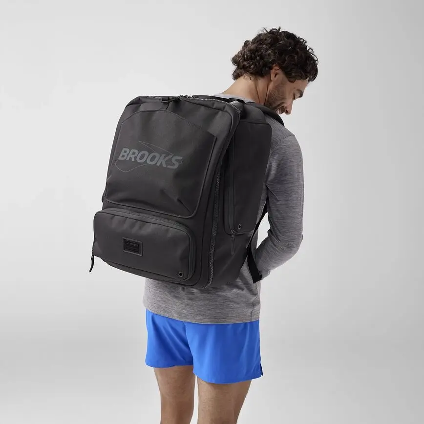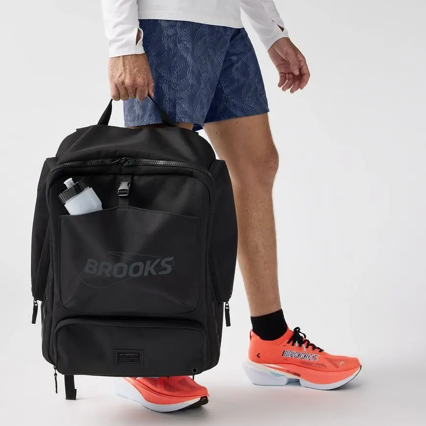 Prepárese para el día de la carrera con la mochila Brooks SuperPack, una mochila con tres compartimentos para zapatillas que le permite llevar todo lo que necesita, desde sus zapatillas deportivas hasta sus zapatillas con clavos.