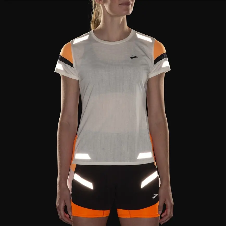 Lo oscuro no siempre significa frío. Para correr en climas cálidos entre el atardecer y el amanecer, elija esta camiseta de running para mujer. Su diseño de alta visibilidad y su tejido GO₂ᵀᴹ ligero y transpirable le ayudan a ser visible como corredora, a la vez que le mantienen fresca y cómoda.